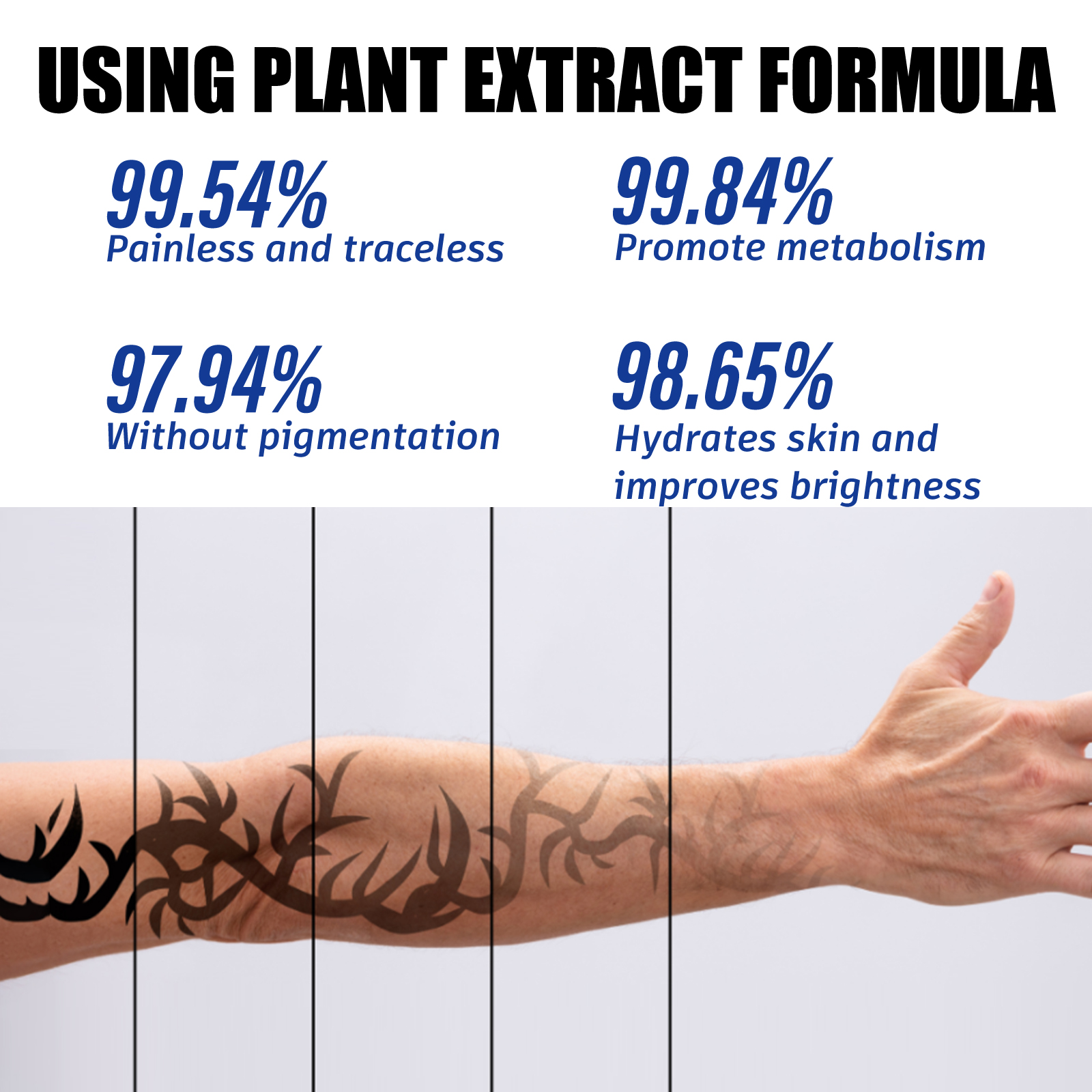 Our Tattoo Dissolving Gel contain Rosmarinus Officinalis(Rosemary)Leaf Oil, Centella Asiatica Extract, Rosa Rugosa Flower Oil. It can help remove tattoos quickly, penetrate deep into the skin, and repair skin barriers damaged by external pigments. Its use method is very simple: first clean and dry the skin, apply an appropriate amount of gel evenly to the tattoo area, ensure complete coverage, gently massage for a few minutes to enhance the penetration and absorption of the gel, wait 5-10 minutes, let the gel fully play its role, and finally rinse off with water. It can provide comprehensive beautification and repair, bringing multiple benefits to skin health.